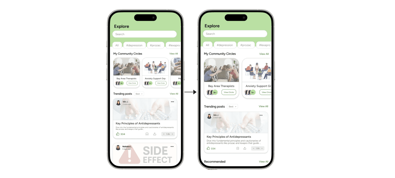 Beyond personal networks, users can join Community Circles—similar to Reddit groups—where they can connect with others managing the same condition and engage with supportive content.