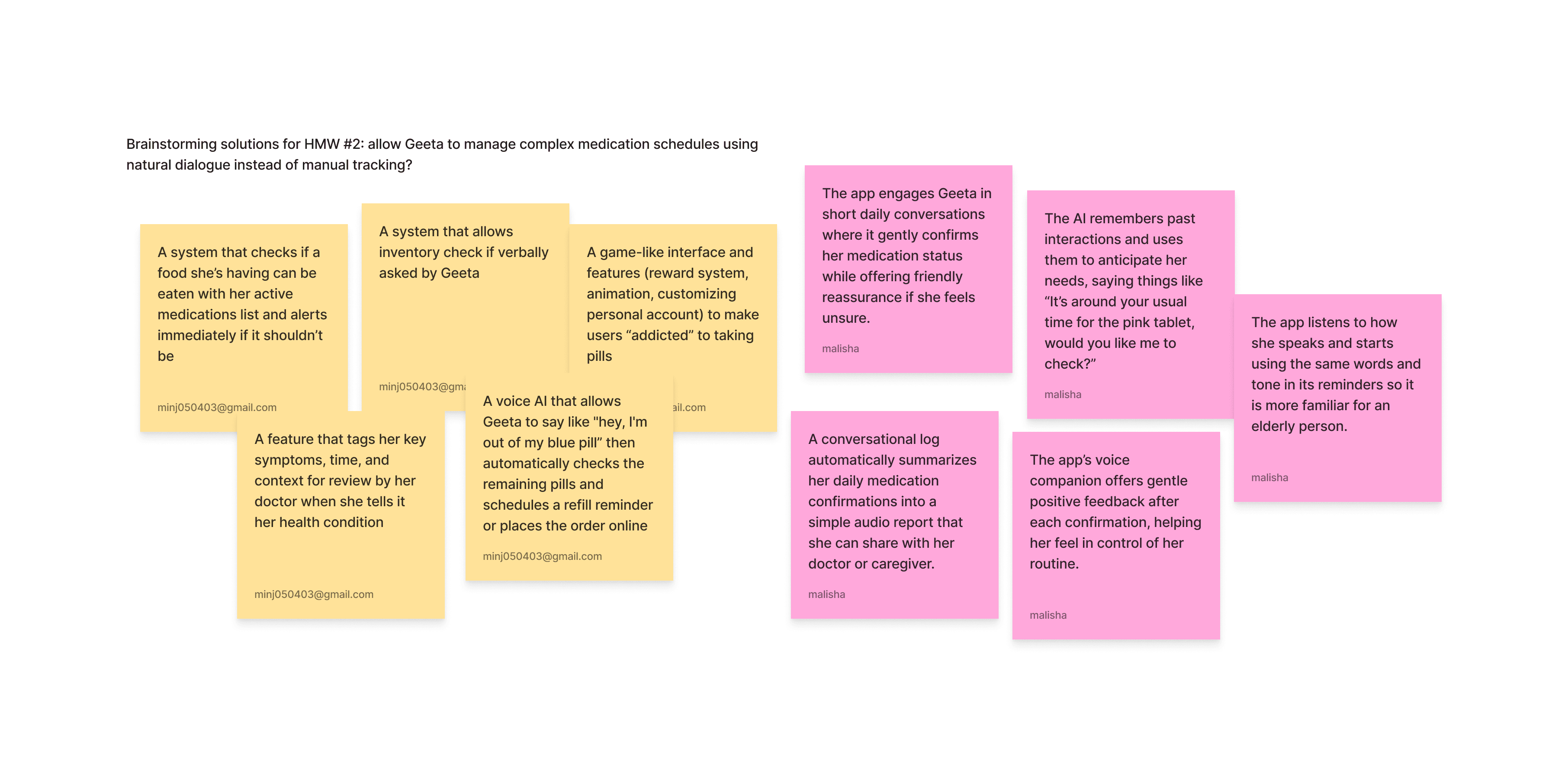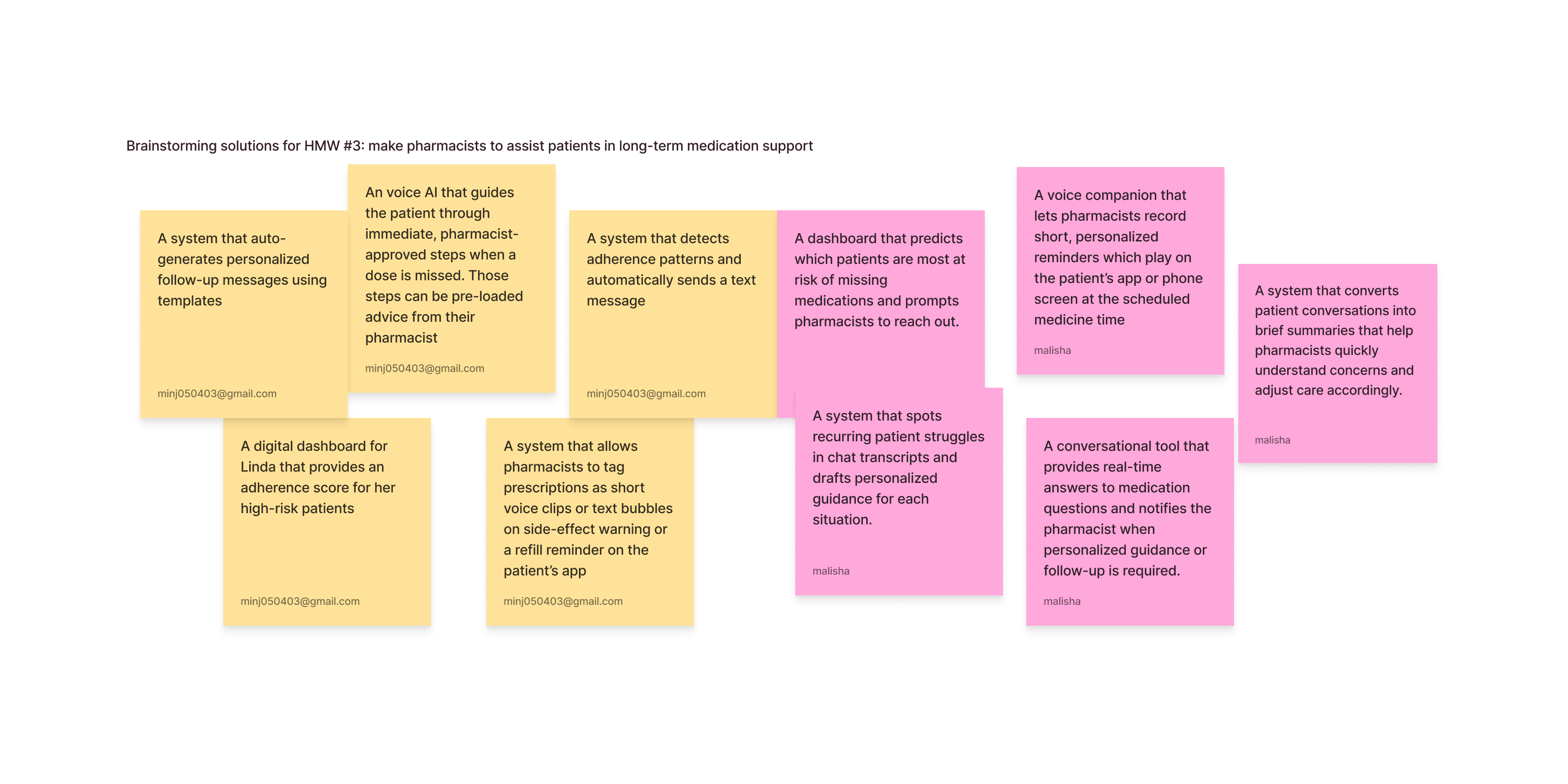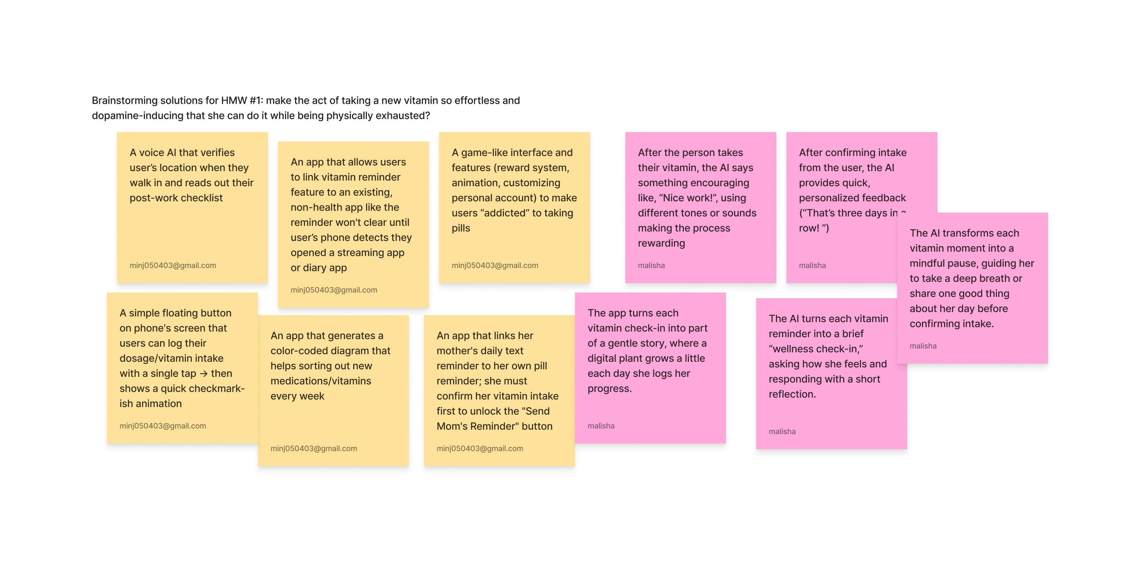 brainstormed solutions for each three HMWs