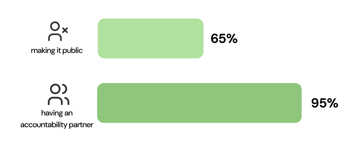 People are 65% likely to meet a goal after making that goal public, but their chances of success increased to 95% when they had a specific accountability partner to report to.